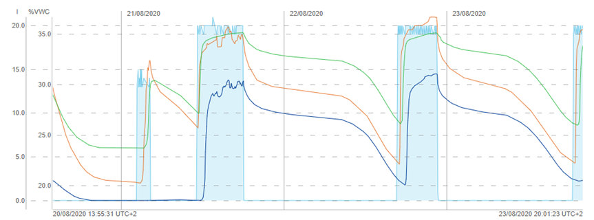 solución del suelo. Además, se detectaron picos durante fases del cultivo donde no era